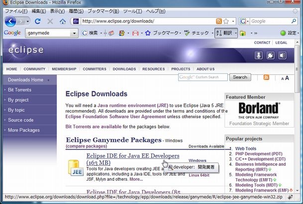 Eclipseの新しいやつ(3.4)のWeb開発版パッケージをダウンロード(Web開発版でなくてもよい)してインストール(解凍して適当なフォルダに置く)