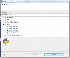 Eclipseを実行し、Window-PreferenceからPyDevの設定。先ほどインストールしたpthon.exeのパスを設定