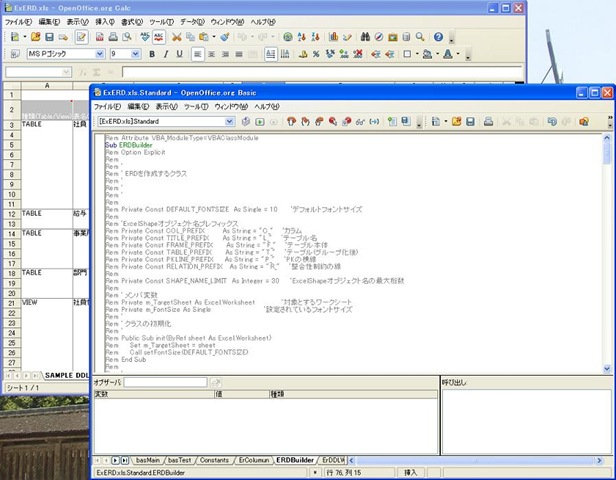 ExcelERDという、ExcelでER図を作成するツールを公開しているのですが、Oooで、万が一動いたりしたらいーなーなんて期待をちょっともちつつ開いてみると・・・