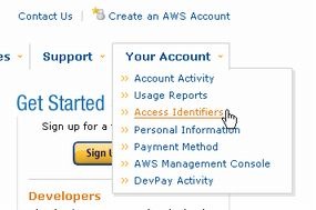 - アカウントの取得はhttp://aws.amazon.com/から行い、取得すると、Your Accountメニュー – Account Identifies から参照可能