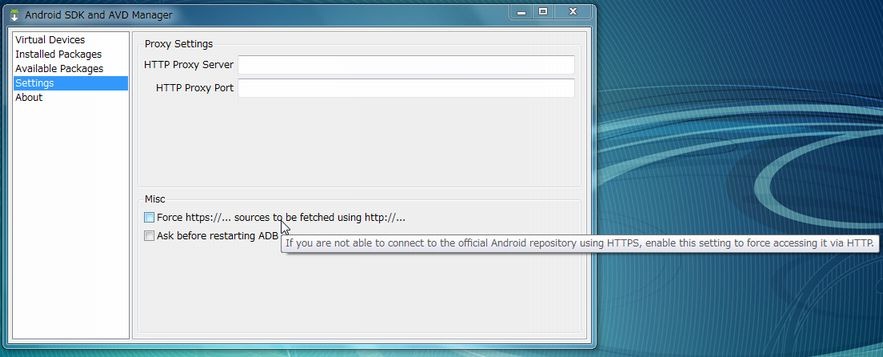 ただし、どんな Android アプリケーションを開発するには、少なくとも1つのバージョンの「Andorid プラットフォーム」 のインストールが必要。