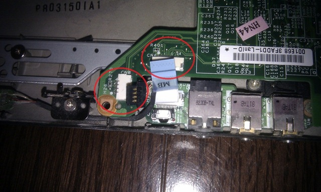 モニター付け根の裏側にパネルがあり、それを取ると、裏側からマザーボードへのコネクタが2カ所ある。(最初これに気づかず無理矢理外す形になってしまった)