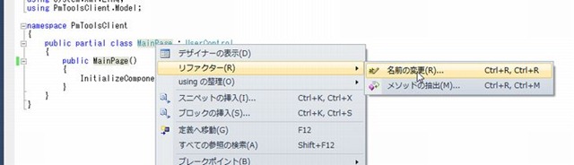 2.Shell.xaml.cs を開き、コードビハインドから、Shellに名前変更のリファクタリング