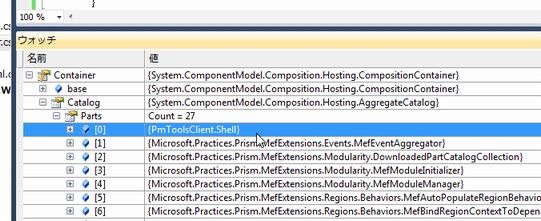 ブレークポイントで、CreateShell で止めて、Containerの中をのぞくと、Shellがカタログに登録されているのがわかる。