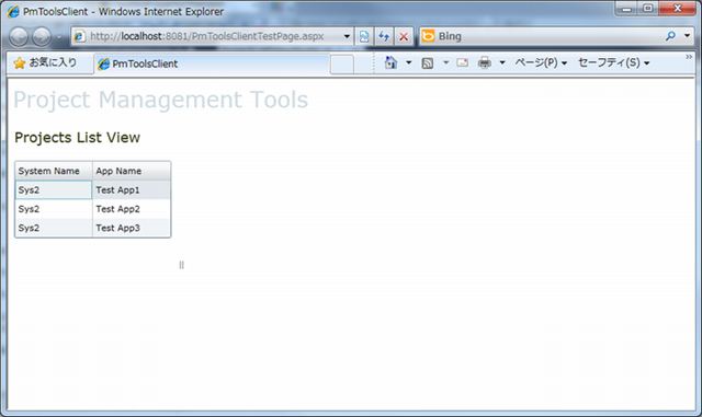 - 今まで、コンストラクタで、データの取得と表示を行っていたのを、コンストラクタでは、上記で作成した、BeginGetProjects メソッドを、コールバック GetProjectCompleted を指定して非同期で呼び出す