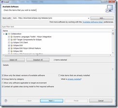 Help – Install New Software から、Collaboration を展開して、Eclipse EGit および Eclipse EGit Mylyn GitHub Feature を選択してインストール