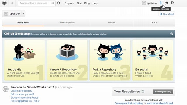 画面右上のアイコンまたは、左下のリンク(Create a Repository)