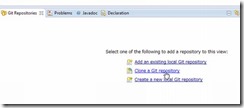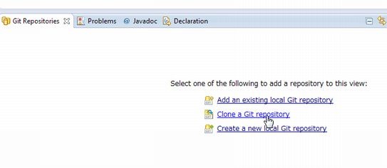 Git Repositories ビュー を表示させると、初期状態で、以下の様になっているので、Clone a Git repository リンクを選択する。