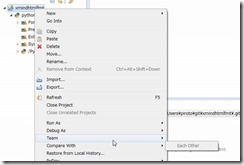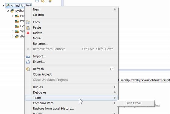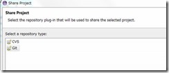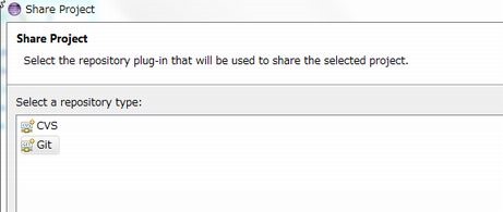 ということで、通常通りプロジェクトを作成し、コンテキストメニュー – Team – Share Project を選択