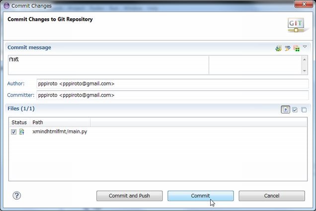 これで、ひとまずローカルリポジトリへのコミットが完了した。