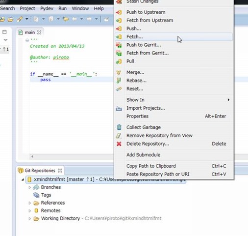 Window – Show View – Other から、Git を展開し、Git Repositories ビューを表示させておく