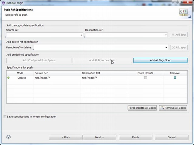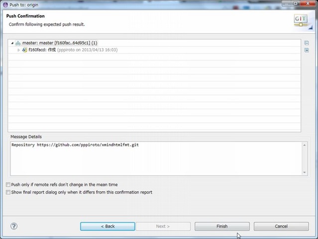 この画面でPushする対象をいろいろ選べそうだ。が詳細は別途調べることとしておく。