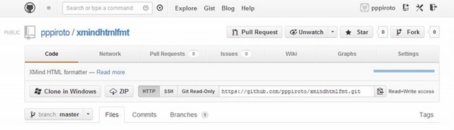 作成できたら、リポジトリページの上段にURLが表示されているが、HTTP か SSH ボタンを選択すると、 Read + Write access となるので、URLをコピー(Ctrl+C)しておく。