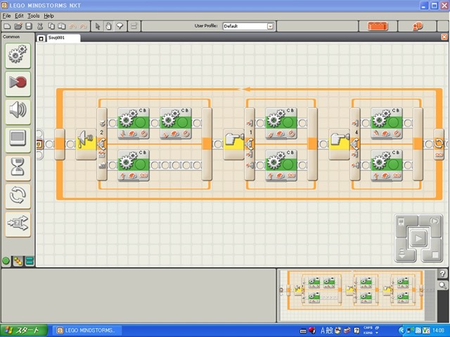 で、実際に、書斎を掃除させたのが以下となります。上図のようにブロックをならべていくつかプロパティを変更するだけで、ここまで(?)動きます。うーん面白い。