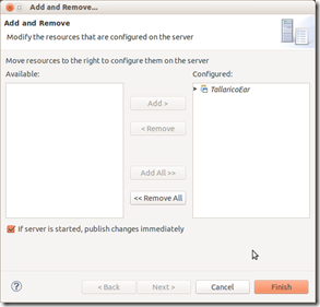 Servers ビュー、GlassFish の コンテキストメニュー Add and Remove を開いて、EARを登録