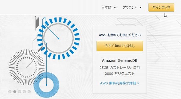 1.1 http://aws.amazon.com/ を開き Sign up をクリック