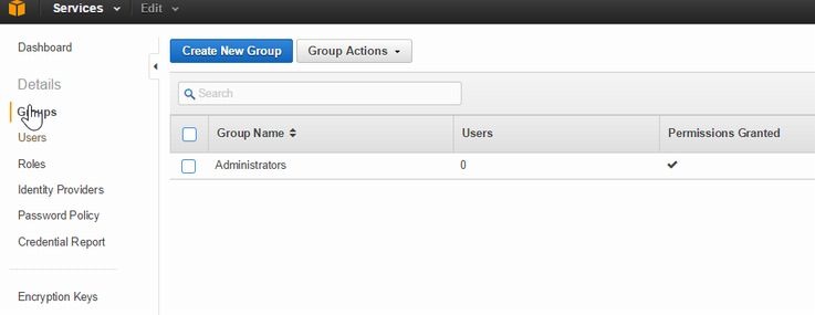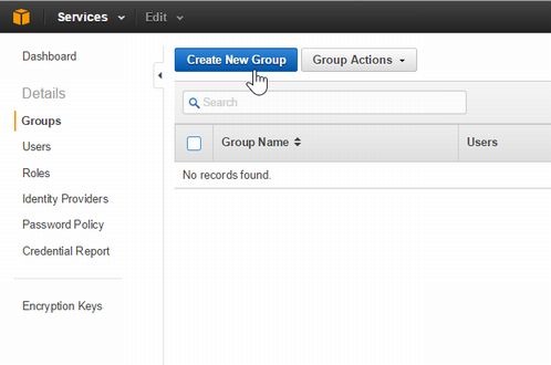 左側のダッシュボードから、Groupsを選択し、Create New Group ボタン押下