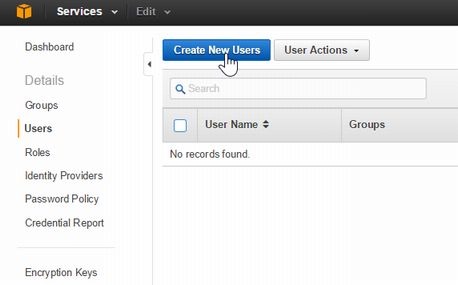 ダッシュボードから Users を選択し、Create New Users ボタンを押下