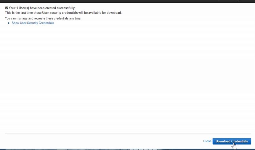 - 自動生成されたパスワードを割り当てた場合、[Download Credentials] または [Show User