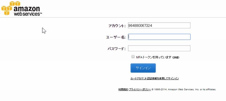 新規の IAM ユーザーとしてサインインするには、AWS コンソールからサインアウトし、次の URL を使用します。このとき、your_aws_account_id はハイフンを除いた AWS アカウント番号です(たとえば AWS アカウント番号が 1234-5678-9012 であれば、AWS アカウント ID は 123456789012 となります)。