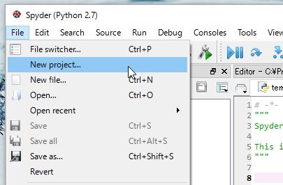 Spyder プロジェクトは、ソースコード(および関連ファイル)や設定ファイル(.spyderproject) とともに、設定(PYTHONPATH、リンクされたプロジェクトなど)を含むディレクトリ。
