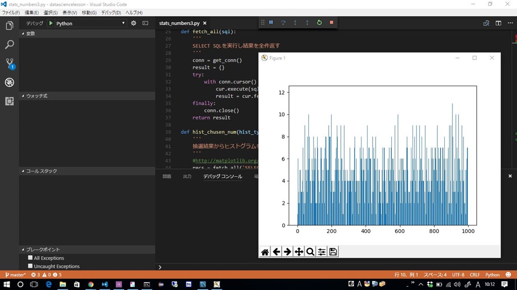 ナンバーズ3のWebページを解析し結果をMySQLに登録して出現頻度のヒストグラム表示するPythonサンプルプログラムをVisual Studio Codeで作成して実行する