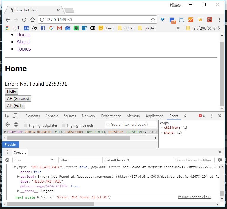 - React の単純なサンプルに React Router を組み込んだものに Redux-Saga を適用する