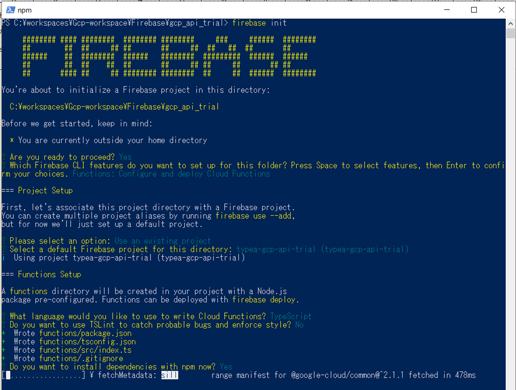 Cloud Functions 準備を行ったので、FIrebaseとの連携で、サーバーレスのバックエンド環境を整えたい。