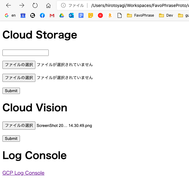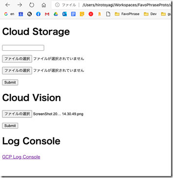<form action=“https://{Firebase Cloud Functions のURL}/helloVisions” method=“POST” enctype=“multipart/form-data”>