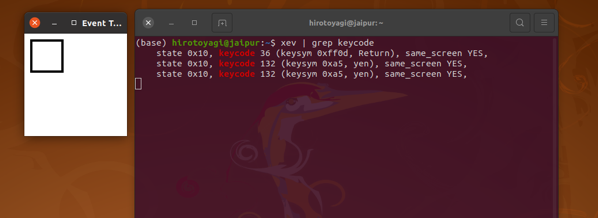以下で、小さなウィンドウが立ち上がるので、そこでキーを押下すると情報が表示される。