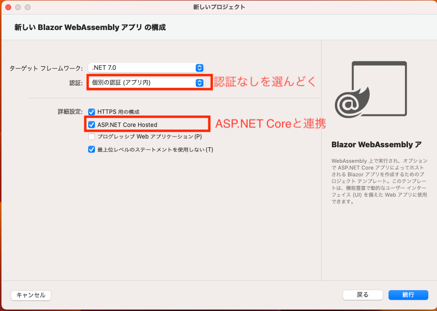 【追記】この時点では、Blazor+ASP.NET Coreの同時デバッグのために、Visual Studio for Macを使用したが、
