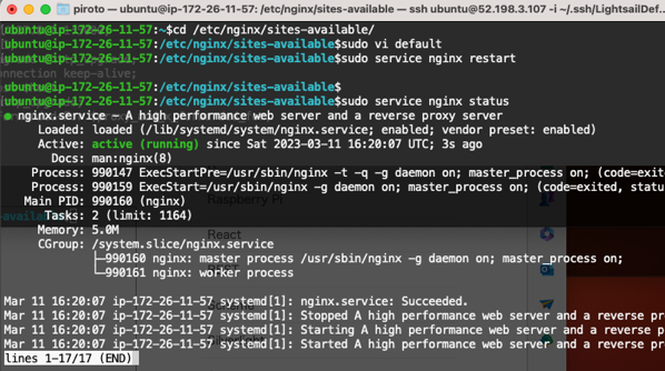 $ sudo systemctl restart nginx $ sudo systemctl status nginx