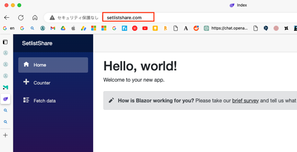 こういう書き方ができるが、Lightsail はこのドメイン名の登録などしていないので、すべてのリクエストをBlazor+ASP.NET Coreに流すために、