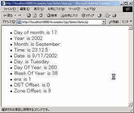 http://localhost:8080/examples/jsp/dates/date.jsp で確認する