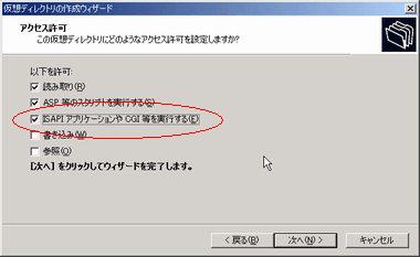 読み取り」、「ASP等のスクリプトを実行する」および、「ISAPIアプリケーションやCGI等を実行する」にチェックを入れる