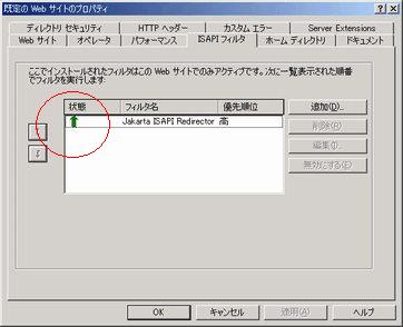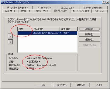| フィルタ名(例) | Jakarta ISAPI Redirector |