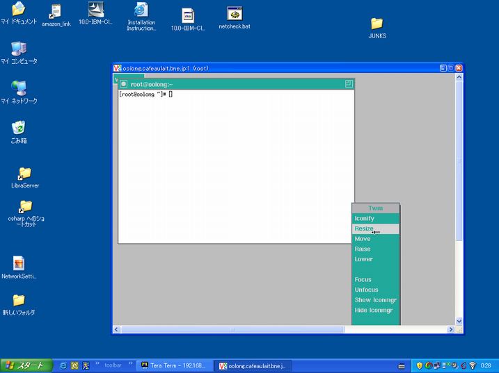FedoraCore3 では、LinuxでVNCサーバを起動する だけだと、 デフォルトのウィンドウマネージャが、Twn のため、KDE(本体側で通常使用している)に変更する。