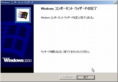 コントロールパネル 〜 アプリケーションの追加と削除 〜 Windowsコンポーネントの追加と削除を起動。